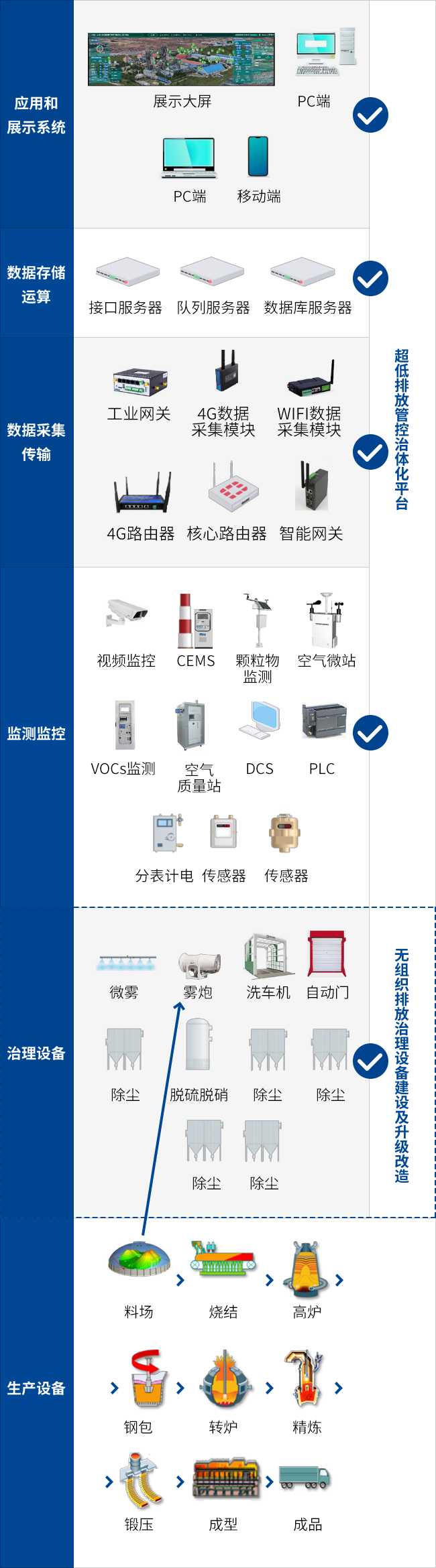 钢铁、焦化、水泥等重工业企业超低排放改造进度是当前政府部门限停产重要依据,也是提升企业环保管理水平的重要抓手。超低排放环保管控治一体化平台的建设是最能体现一个企业整体环境形象的关键要素。